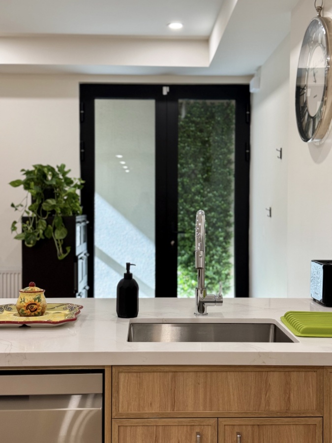 Bright and comfortable 2-bedroom, 1,200 sq. ft. apartment with 9-ft ceilings. Sleeps 4. king bed, 2 singles, and a sofa. Fully equipped kitchen and spacious living room.