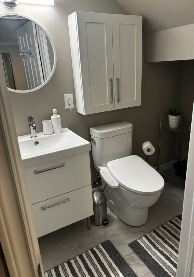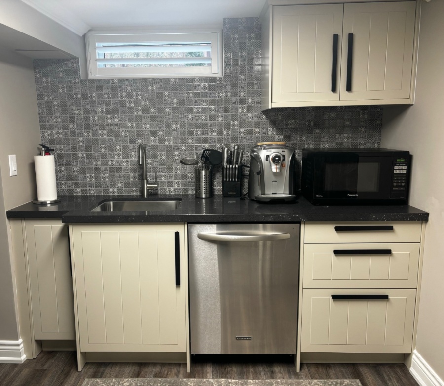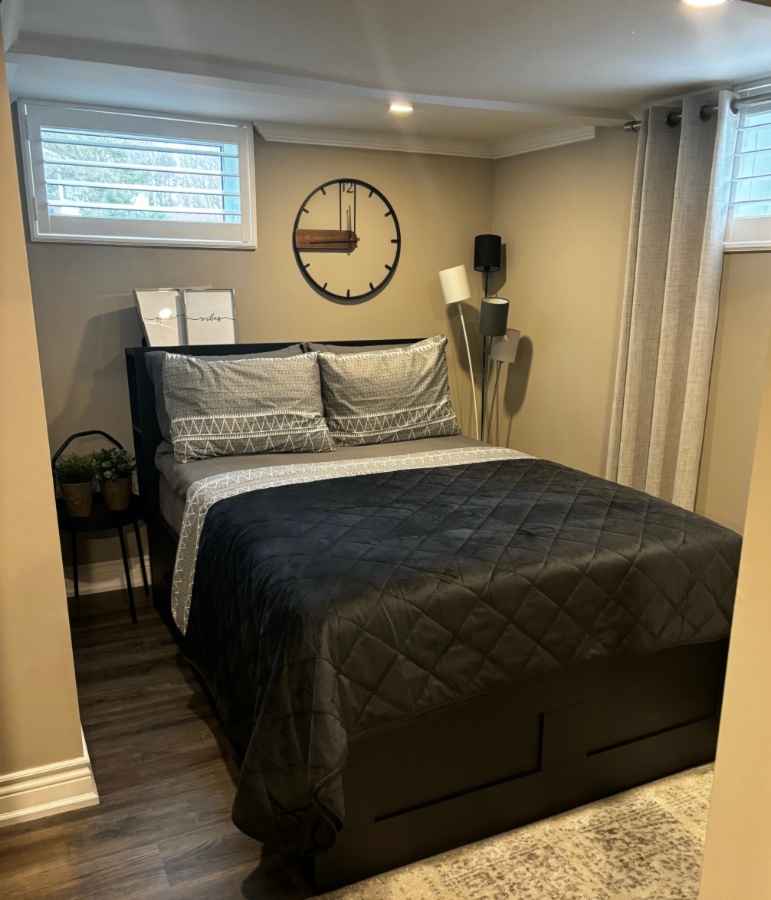 Отдельный вход, отдельные стиральная и сушильная машины, кухня с гранитной столешницей, full fridge и dishwasher – по качеству и удобству просто 5-звездочный отель новой мебелью, с постельным бельем, полотенцами и посудой.