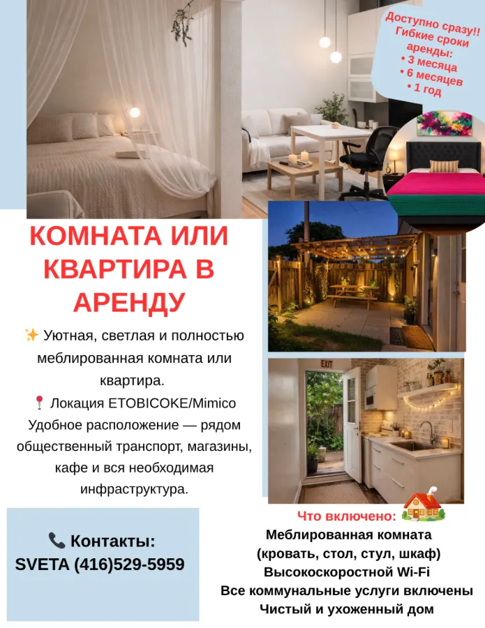 Royal York and lakeshore меблированная комнаты и студия