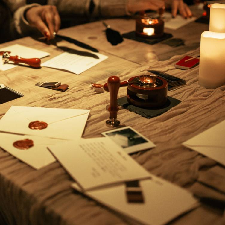Напишите романтичное послание любимому человеку настоящим пером — так, как это делали веками влюблённые! Зал будет украшен сотнями свечей, а гостям предоставят специальную бумагу, чтобы написать письмо и запечатать его воском — полное погружение в атмосферу прошлых веков.
