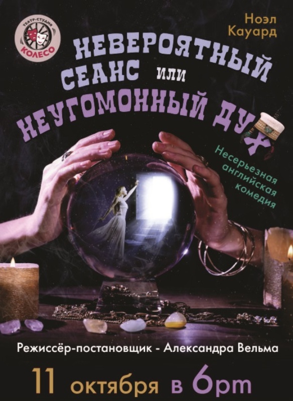 Cпектакль "Невероятный сеанс или неугомонный дух" поставлен по очень известной пьесе Ноэла Кауарда с таким же названием. В доме преуспевающего драматурга Чарльза Кондомайна, который не верит ни в чудеса, ни в духов, разворачивается вечер, полный загадок. На дружескую вечеринку он приглашает экстравагантную медиума мадам Аркати, чтобы посмеяться над невежеством многочисленных лордов-спиритов. Но после необычного сеанса за столом происходят странные и необъяснимые события — и вечер превращается в настоящую мистическую историю.