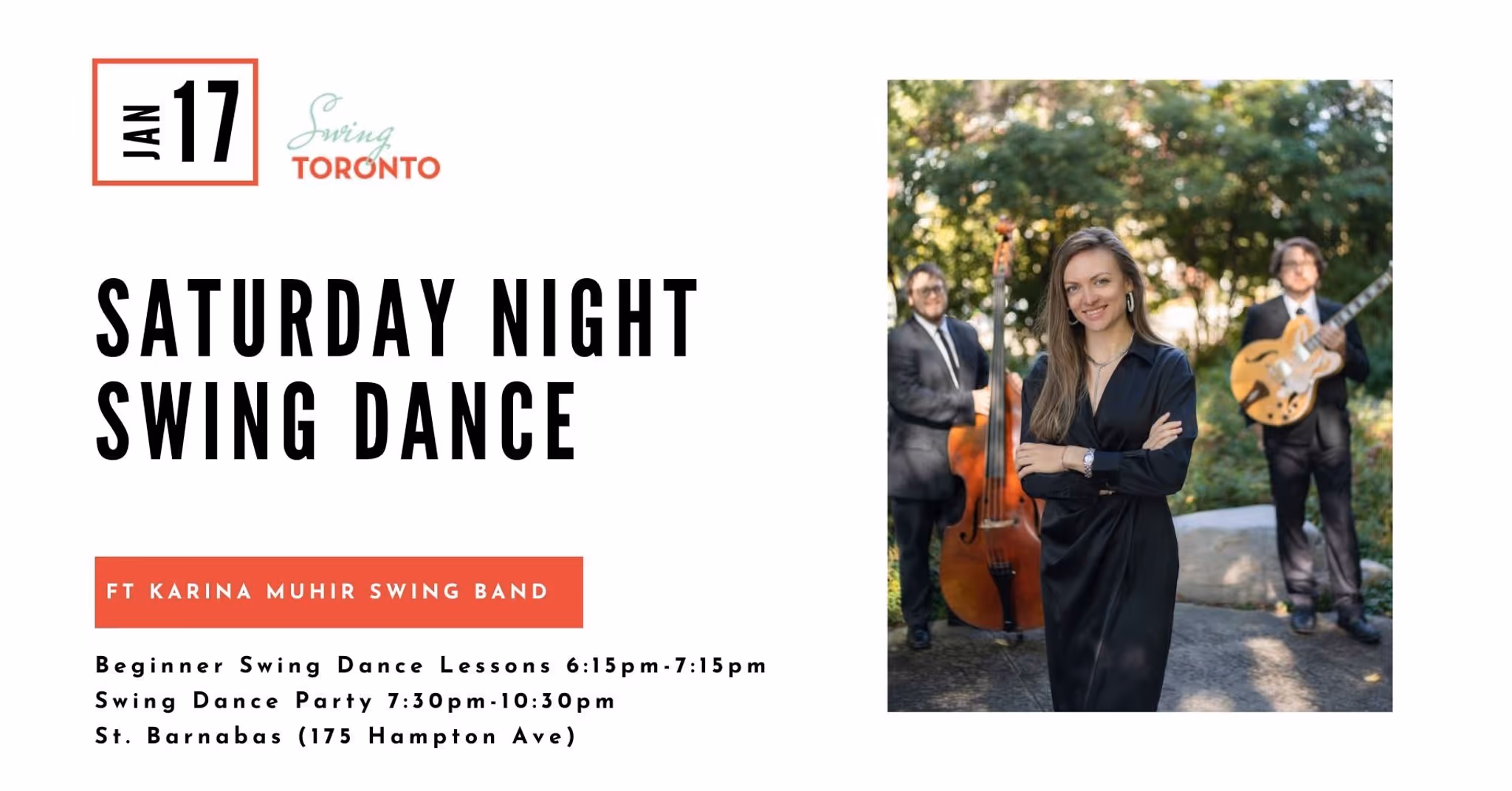 Saturday Night Swing Dance with Karina Muhir Swing Band Plus a Beginner Swing Dance Lesson