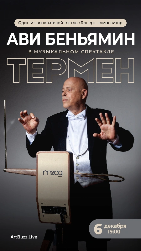 Музыкальный моноспектакль «Теремин» рассказывает историю Льва Теремина — мистического композитора, изобретателя и шпиона — через живое исполнение его музыки на терменвоксе. На сцене выступят известный израильский композитор и музыкальный директор театра «Гешер» Ави Беньямин и пианист Максим Шаталкин. Зрителей ждёт уникальное сочетание захватывающей истории, живой музыки и редкого инструмента.