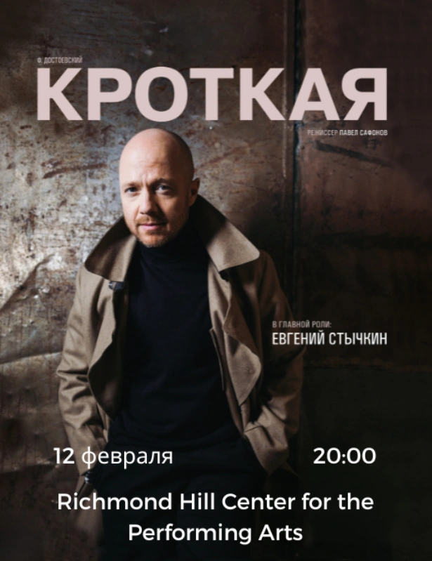 Спектакль «Кроткая» по мотивам произведения Ф. М. Достоевского. Постановку создал режиссёр Павел Сафонов, главную роль исполняет выдающийся артист театра и кино Евгений Стычкин, лауреат премий «Золотой Орёл» и «Чайка».