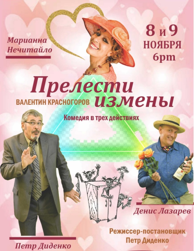 Спектакль объединяет три пьесы Валентина Красногорова в жанрах от трагикомедии до фарса, сочетая юмор и размышления о взаимоотношениях между мужчиной и женщиной. Зрителей ждут яркая актёрская игра, оригинальная режиссура и бессмертные хиты мировой музыки, создающие незабываемую атмосферу.