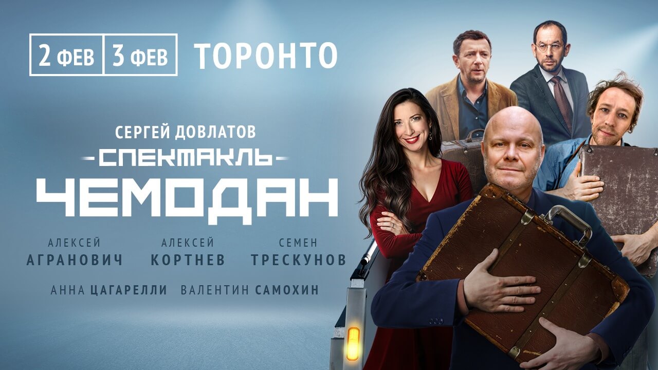 Февраль ознаменуется долгожданным спектаклем «Чемодан» по культовой книге Сергея Довлатова: 2 и 3 февраля в Richmond Hill Centre for the Performing Arts.
