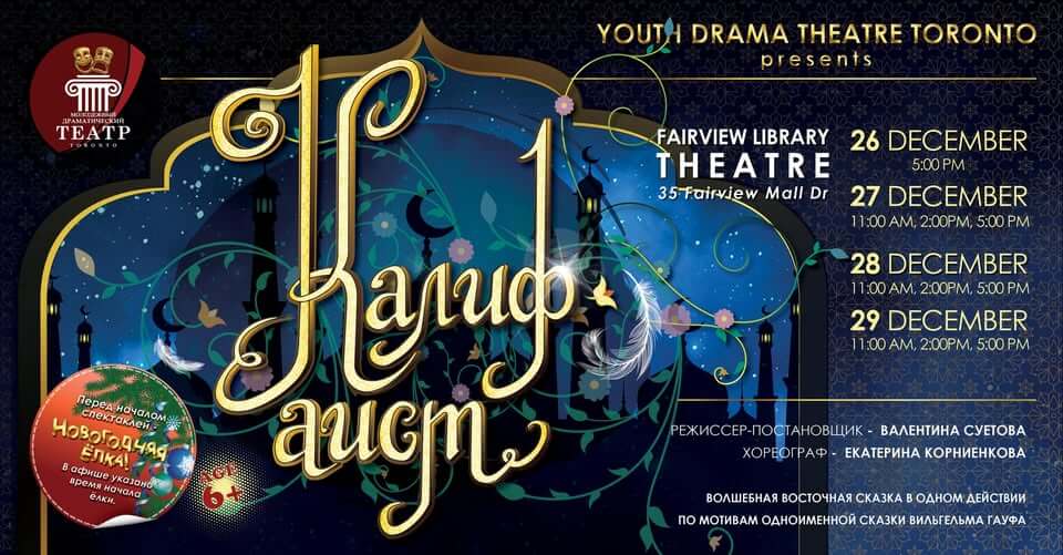 А завершит декабрьский сезон новогодний спектакль «Калиф Аист», который пройдёт в Fairview Library Theatre с 26 по 29 декабря.
