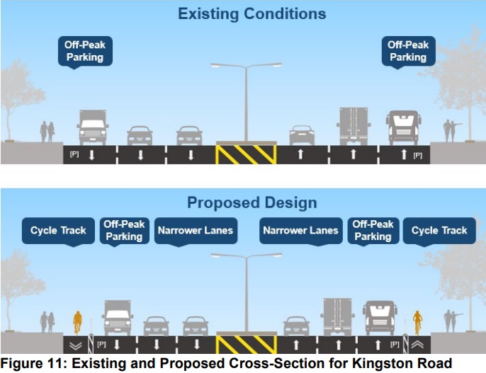 Одним из ключевых объектов станет шестикилометровый участок Kingston Road, где город планирует установить велодорожки, не уменьшая при этом количество полос для автомобилей.